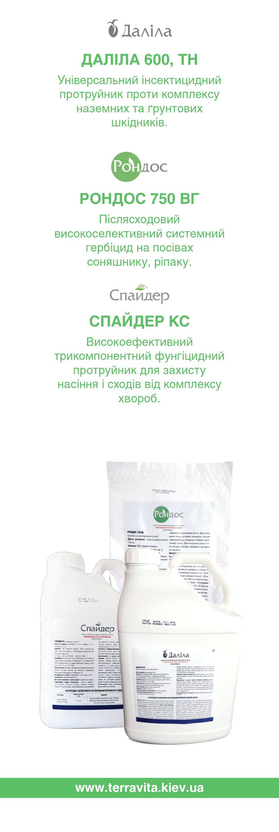 Даліла 600, ТН – універсальний інсектицидний протруйник проти комплексу наземних та ґрунтових шкідників. Діюча речовина – імідаклоприд, 600 г/л.